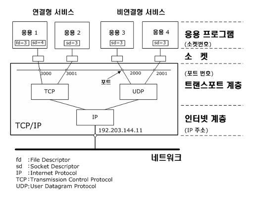 즉, OSI 7 계층의 어플리케이션 계층(application layer)에 존재하는 네트워크 응용 프로그램들은 데이터를 송수신 하기 위해 소켓을 거쳐 전송 계층(trasport layer)의 통신 망으로 전달함으로써 데이터를 송수신 하게 된다.