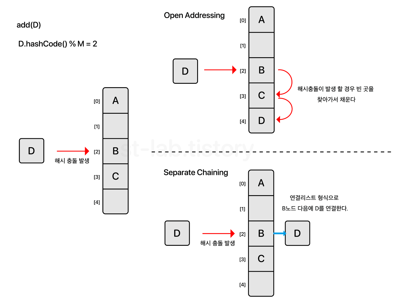 이것을 '해시 충돌 hash collision'이라고 표현하며, 충돌이 적은 해시 함수가 좋은 해시함수다.