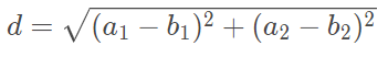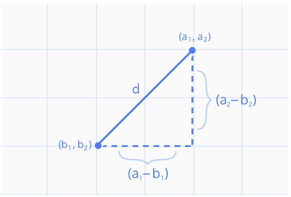 예를 들어 아래와 같이 2차원에 있는 점 a와 b의 거리를 구한다면 이렇게 나타낼 수 있다.